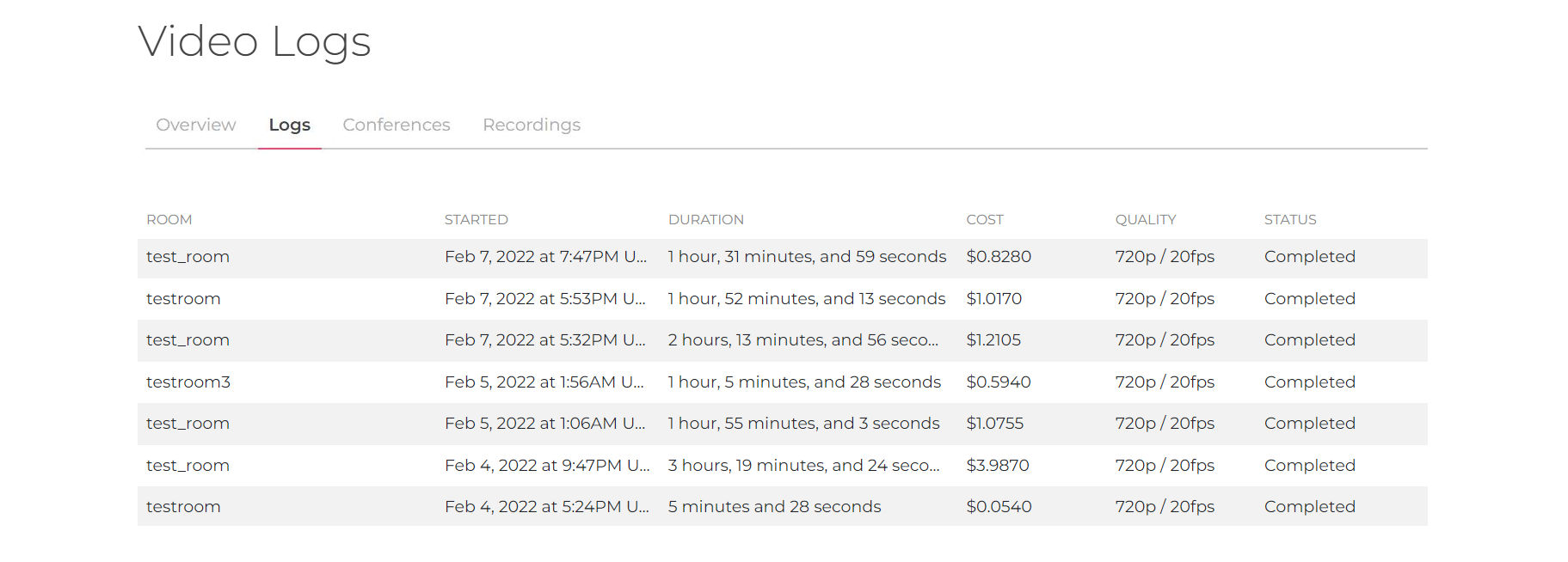 Access logs for your video conference room in the unified Logs tab of the Dashboard sidebar.